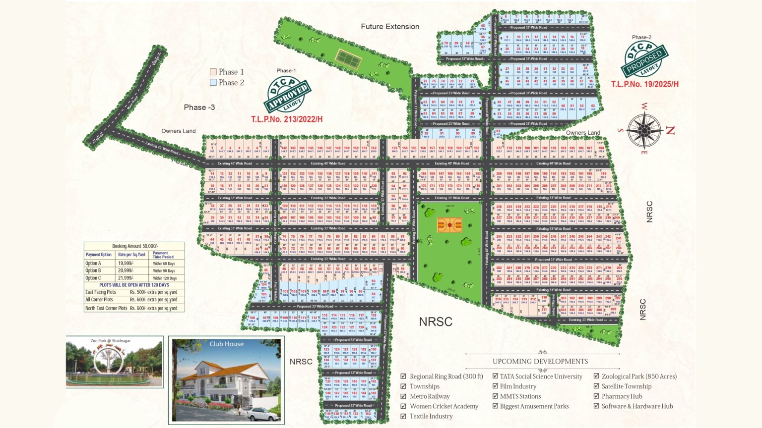 Maruthi Star City is a prestigious residential villa plot venture by Sri Siddi Vinayaka Developers, offering a perfect blend of modern infrastructure, serene surroundings, and high-value investment opportunities. Strategically located in Anantram Village, Rangareddy District, this DTCP-approved and TS RERA-registered project is designed for those looking to build their dream homes in a secure and well-planned community. With 27 acres of meticulously planned layout featuring wide CC roads, underground drainage, streetlights, and a sewage treatment plant (STP), the project ensures a comfortable and luxurious lifestyle for its residents.